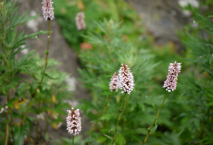 カモメが谷川の池で水遊び。 海岸に出ると、礼文滝が見える。 礼文滝コースは、まだ花が残っており、十分楽しめた。 |