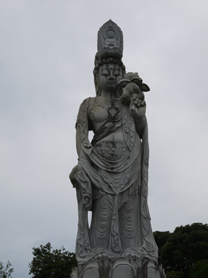 ↑御影石の観音像(高さ6m、重さ25t) |