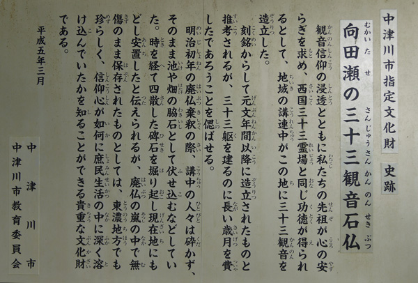 ↑ 向田瀬の三十三観音石仏 (中津川市指定文化財) |
