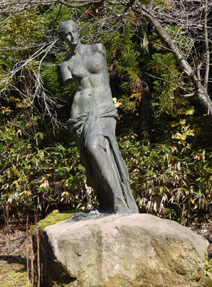 ↑ 道路の分岐点、高台の矢印の所に「永遠の像」。