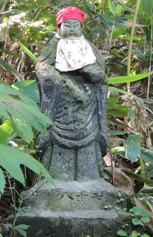 石仏はその手に印を結び、持ち物を持っているので、エプロンを外さないと何か分からないとのことである。