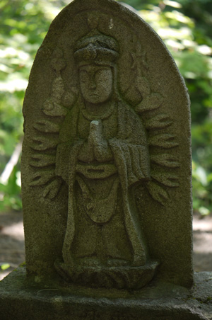 ふきだし湧水の名水を汲んだときに、たまたま見つけた観音像でした。