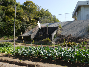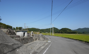 ↑ 川内川河口付近に、江ノ口の田の神。 → |