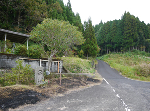 ↑ 空港道路、池頭バス停傍の田の神。