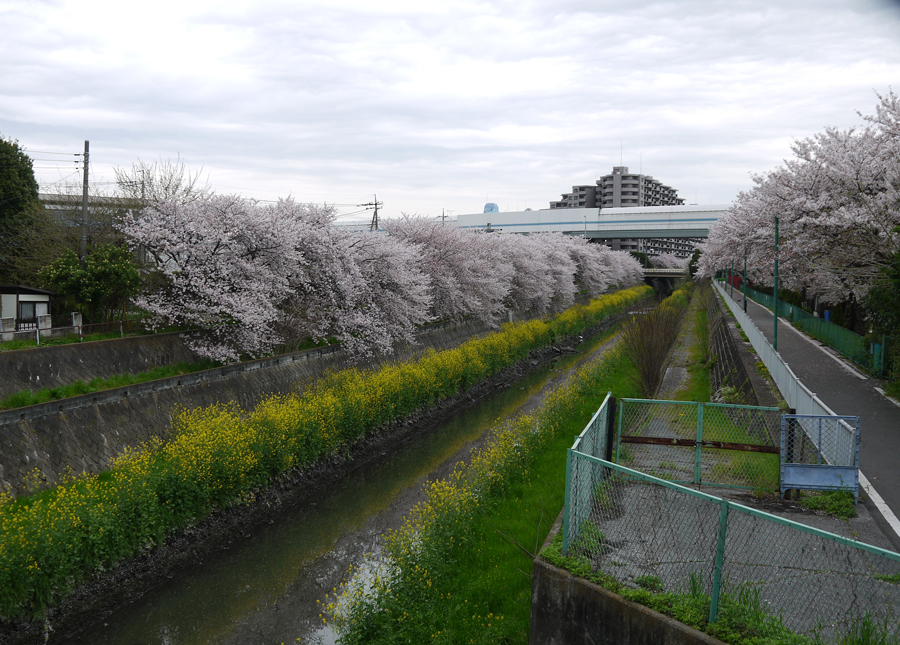 ↓ 小堂の右手に小川があり、桜と菜