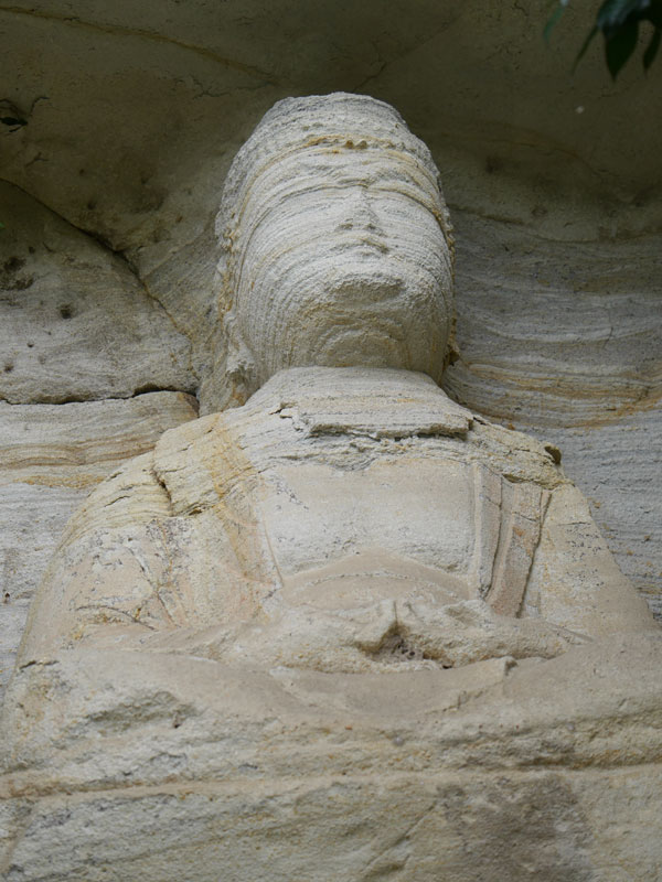 ↑ 茂みの奥に、摩崖仏。