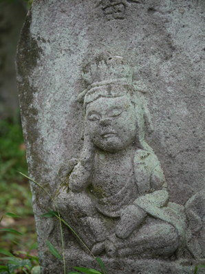 栂池高原バス停から、「塩の道・千国越えコース」に入り、五分ほど歩くと、前山百体観音がある。